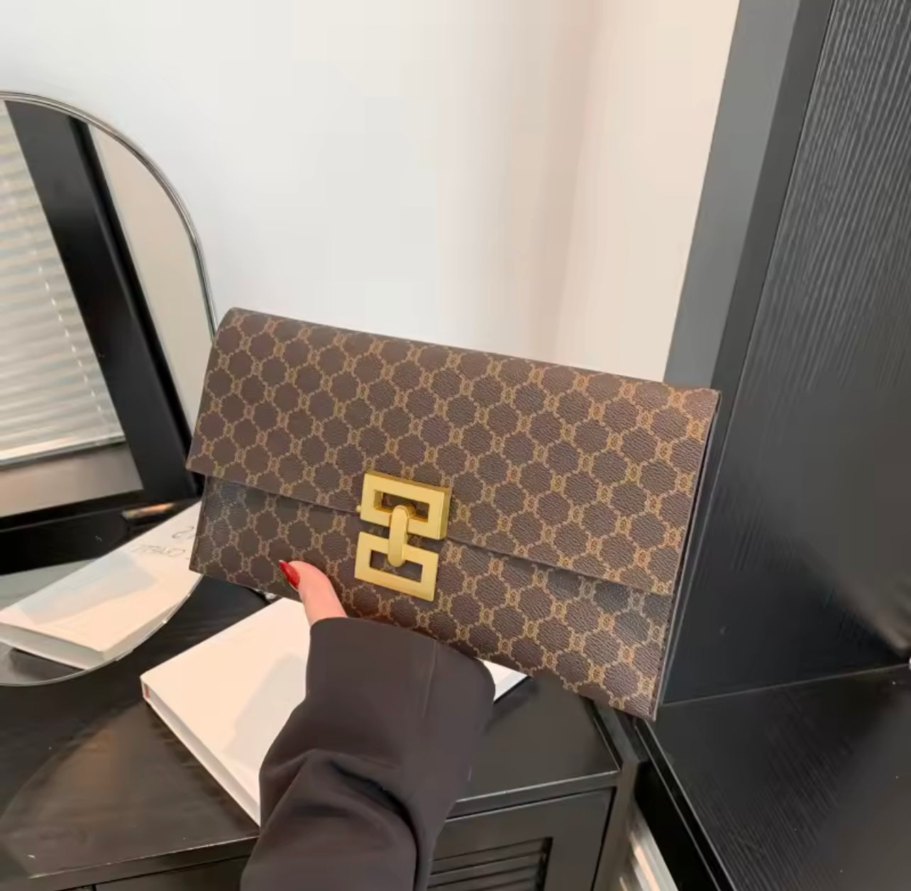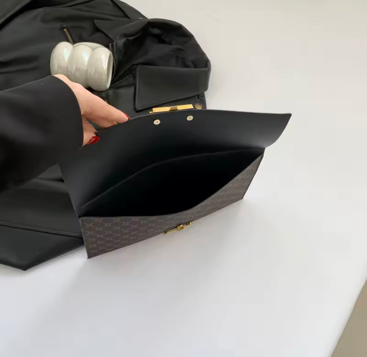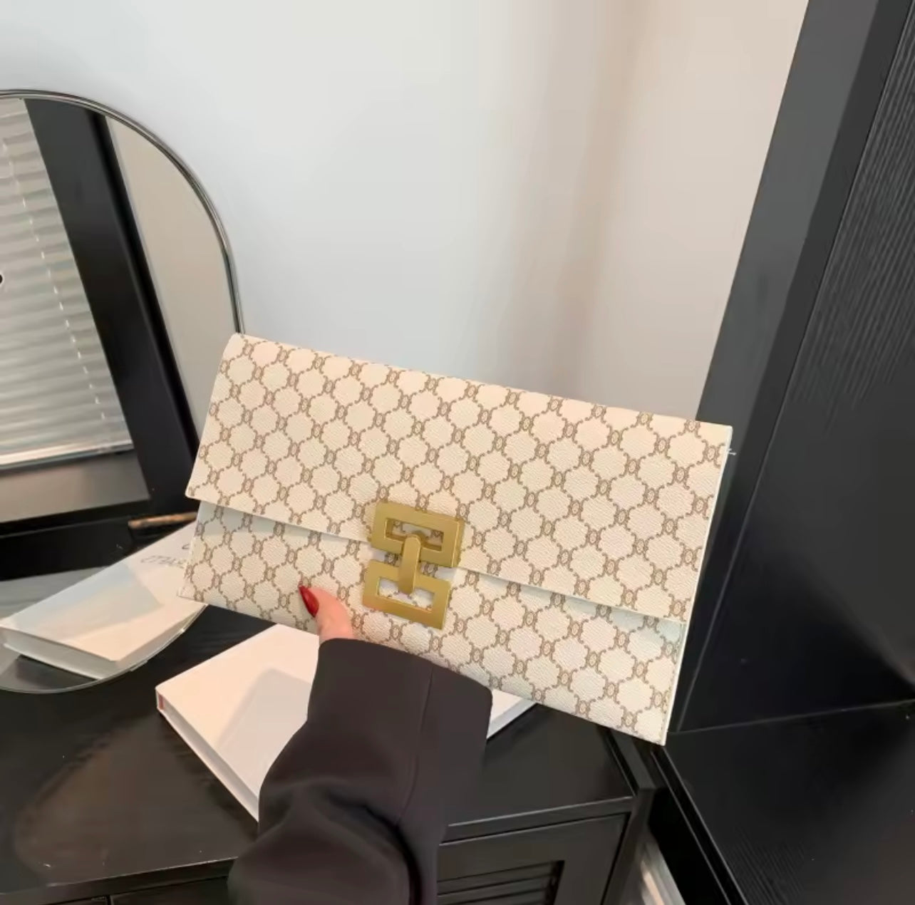 Die Clutch ist handlich geschnitten und Applikationen verziert. Sie besteht aus Kunstleder. Die Clutch ist ein echter Hingucker..