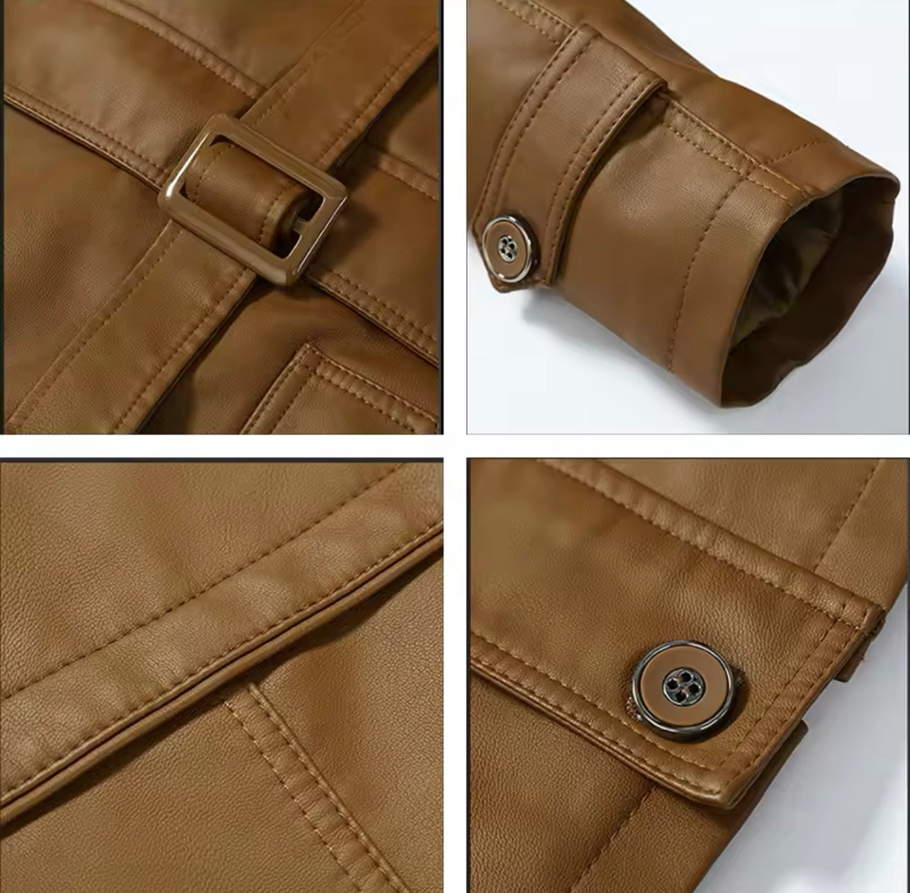 Die Lederjacke ist gerade geschnitten und mit Applikationen verziert. Sie besteht aus Leder und Velourleder.