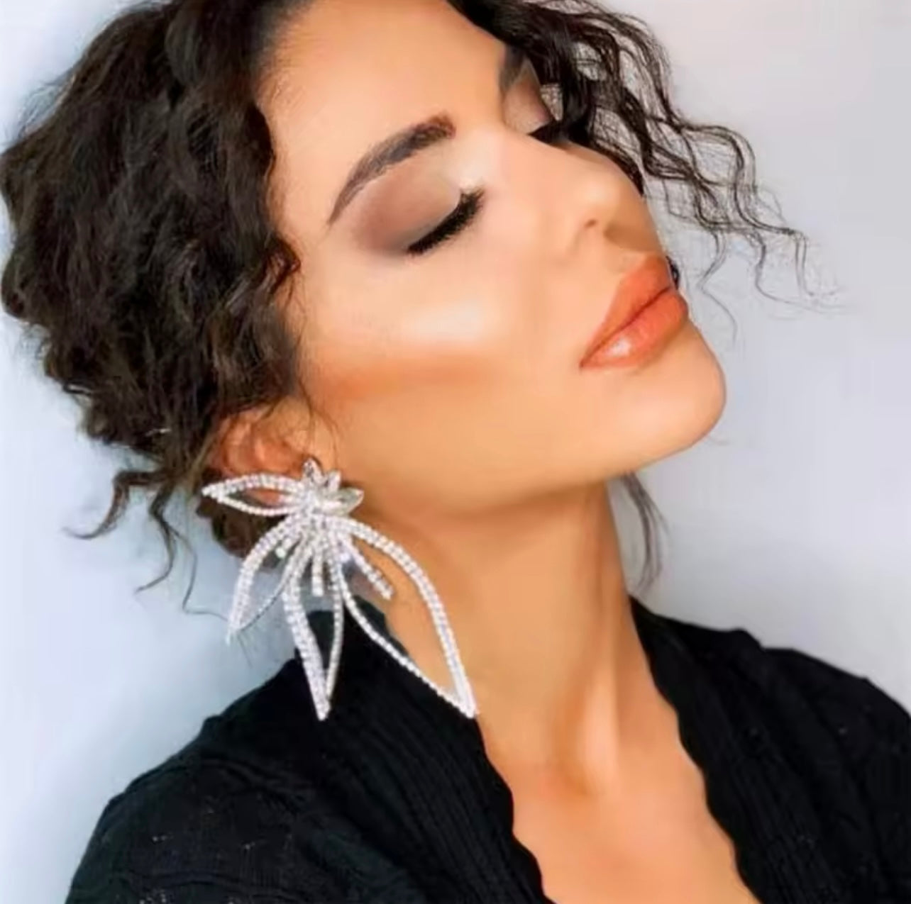 Die Ohrringe sind groß geschnittenen Nickelfrei. Sie bestehen aus einer Zink Legierung und Strasssteinchen. Sie funkeln extrem im Licht..