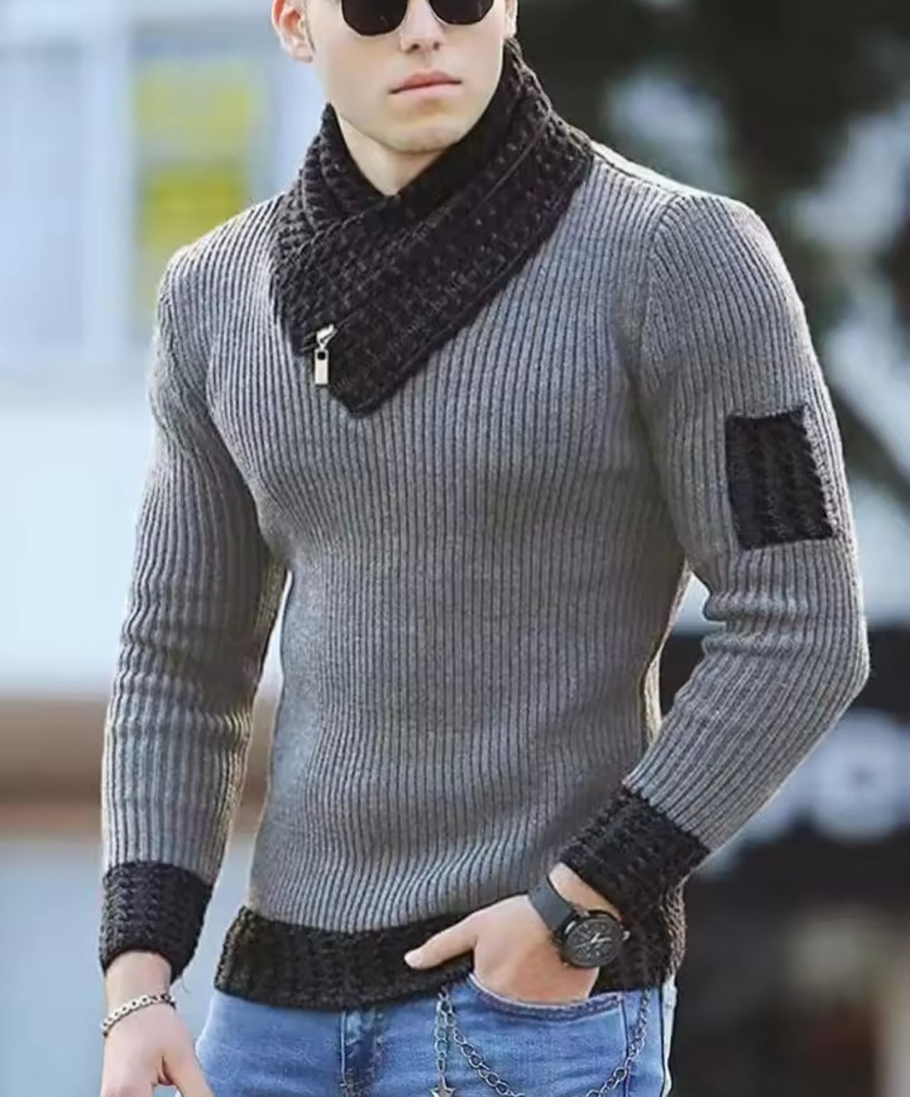Der Pullover ist gerade geschnitten und mit Applikationen verziert. Er besteht aus Polyester und Strick..