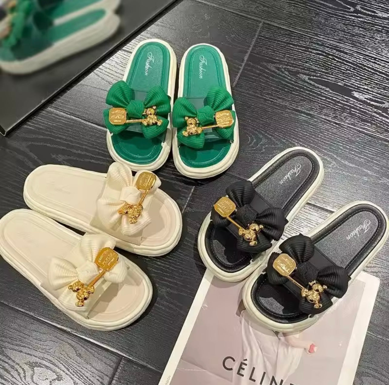 Die Sandalen sind offen geschnitten und mit Applikationen verziert. Sie bestehen aus PVC und Polyester. Sie passen perfekt zu jedem Sommerlook..