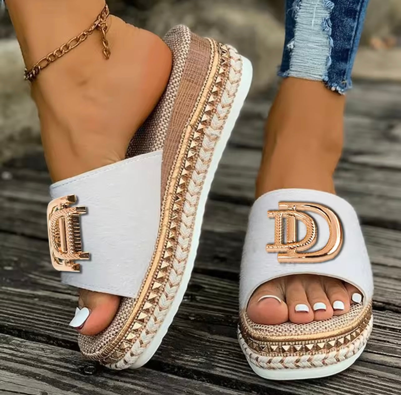 Die Sandalen sind offen geschnitten und mit Applikationen verziert. Sie bestehen aus Kunstleder und Polyester. Die Sandalen sind perfekt für jedes Sommer Outfit…