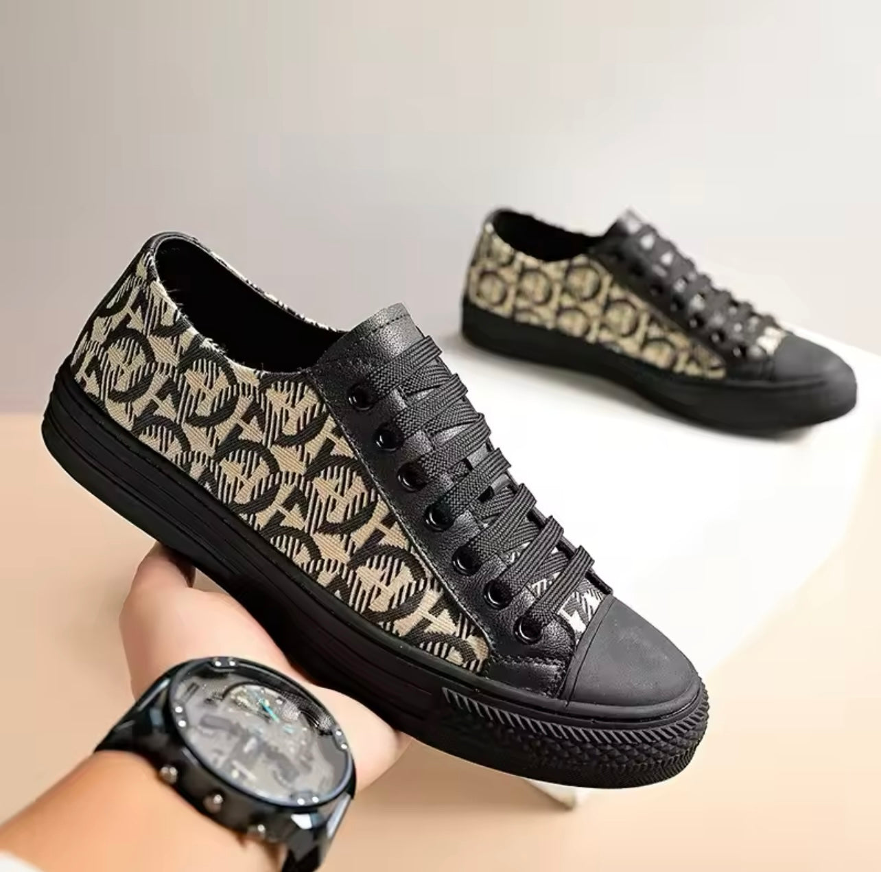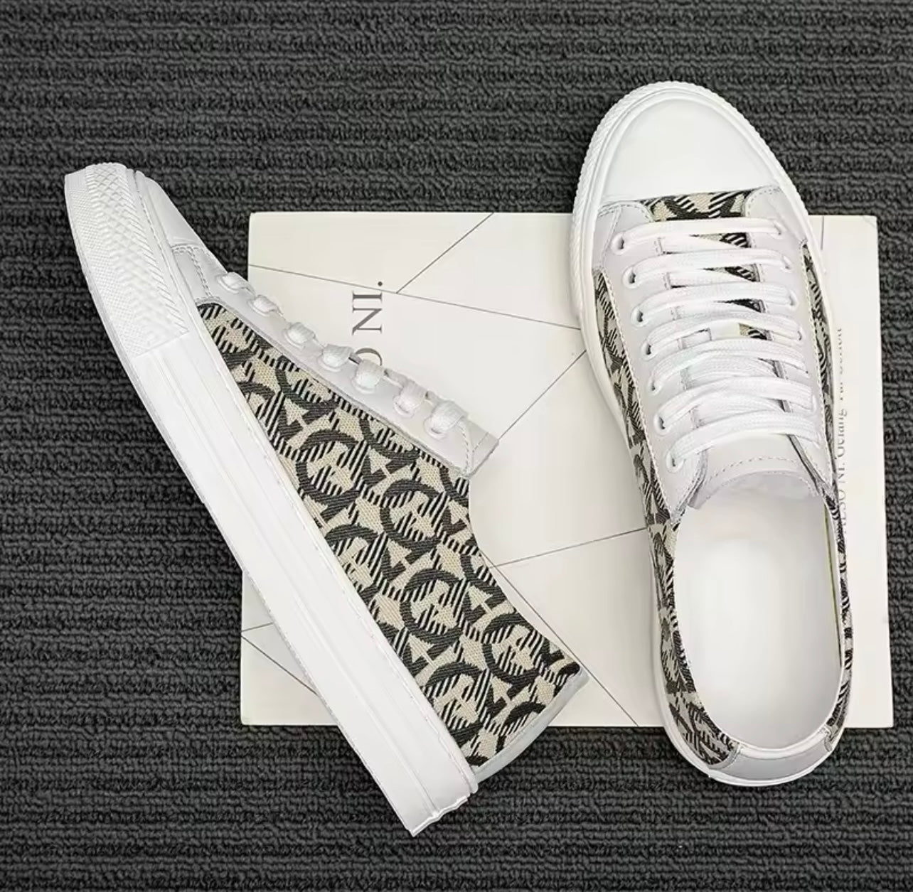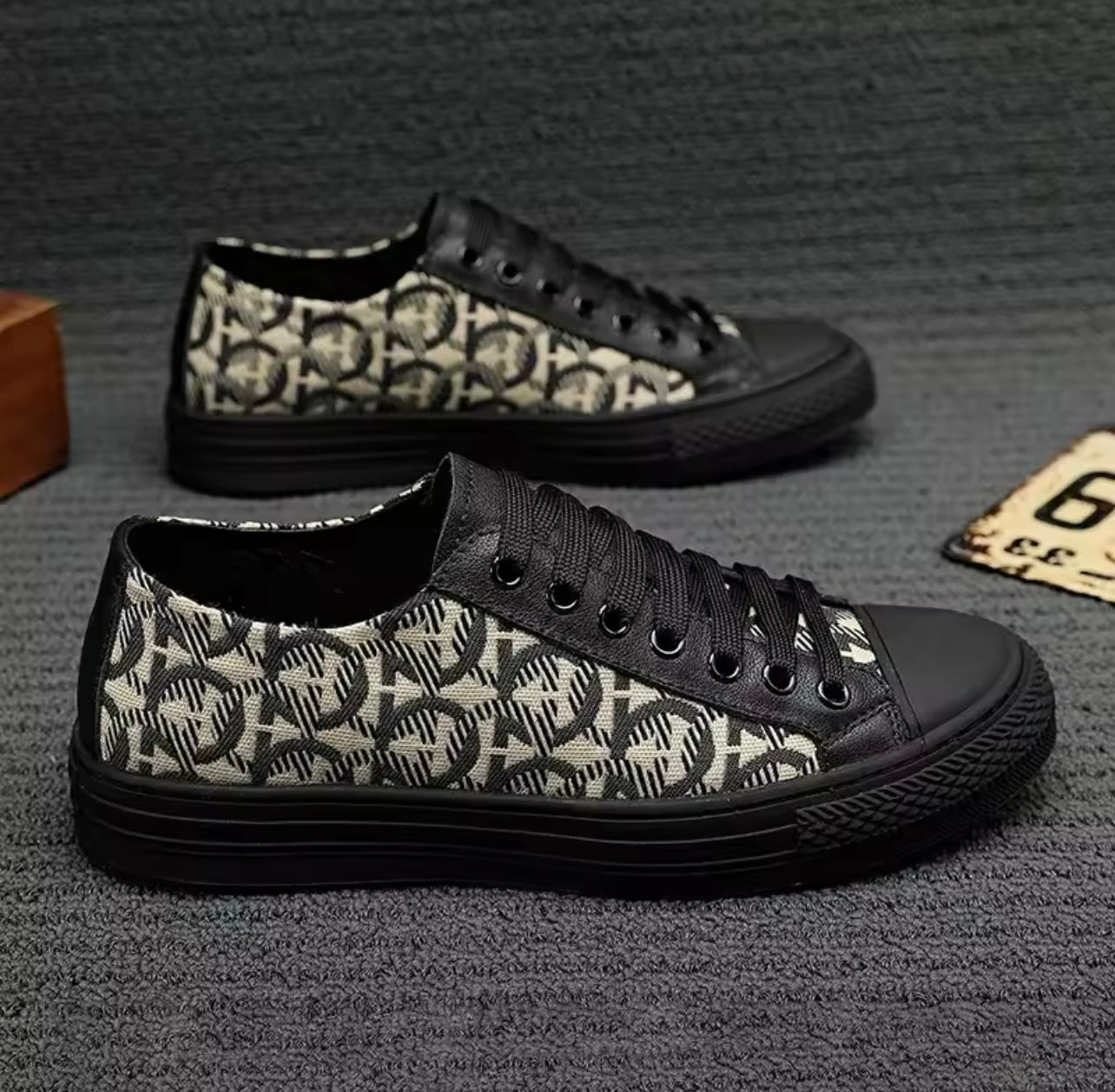 Die Sneaker sind zum Schnürren und mit Applikationen verziert. Sie bestehen aus Kunstleder und Polyester..
