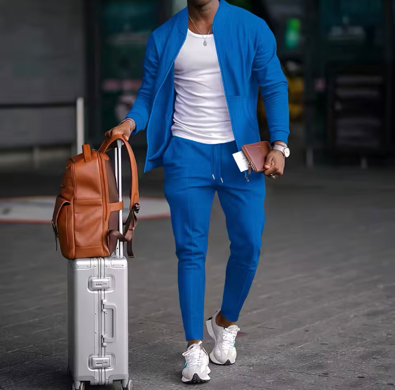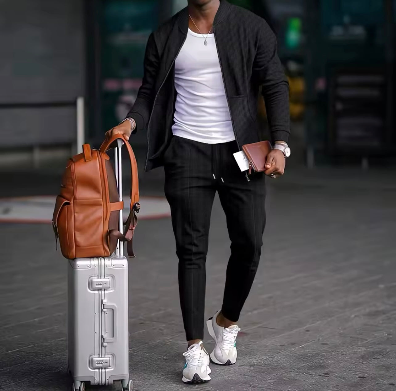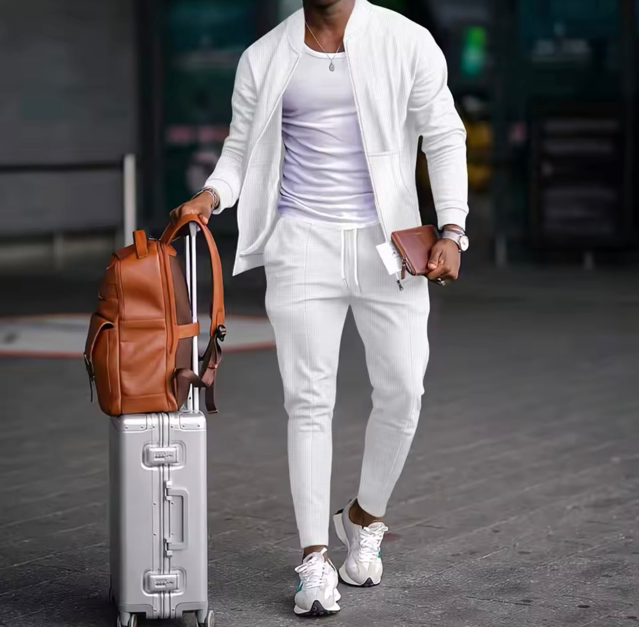 Das zweiteilige Set besteht aus Strick und Polyester. Es passt perfekt zu jedem Look..