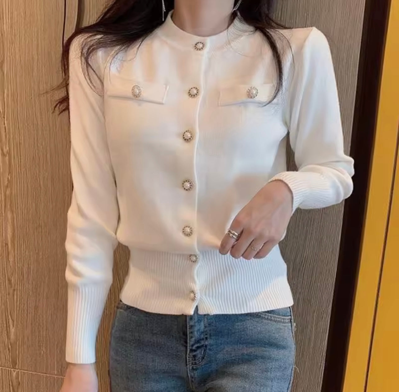 Die Strickjacke ist gerade geschnitten und mit Knöpfen verziert. Sie besteht aus Strick, Wolle, Baumwolle und leichtem Stretch. Die Strickjacke passt perfekt zu jedem Style..