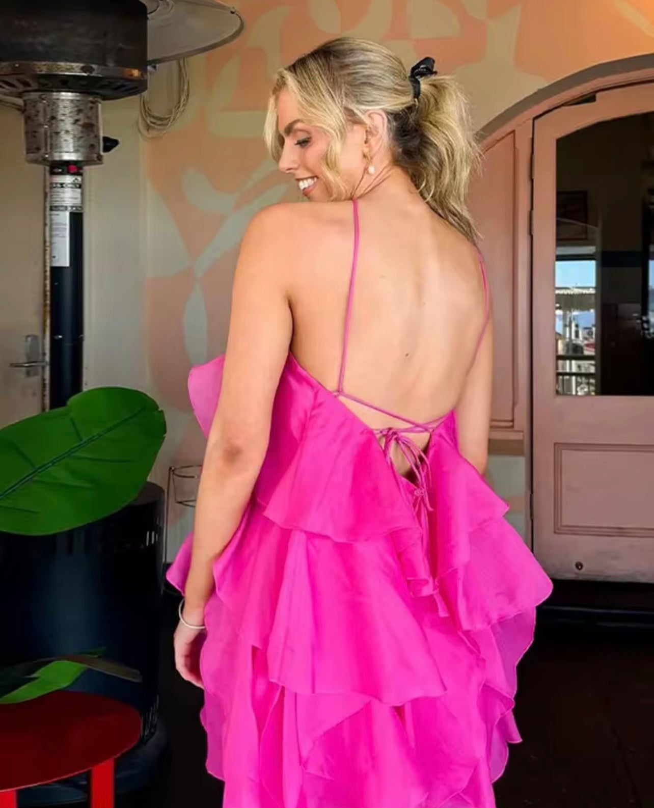 Das Kleid ist kurz, etwas weit, ärmellos geschnitten und mit Rüschen verziert. Das Kleid besteht aus Kunstfaser, Baumwollmischung, Baumwolle und Polyester. Das Kleid ist das perfekte Sommer Outfit..